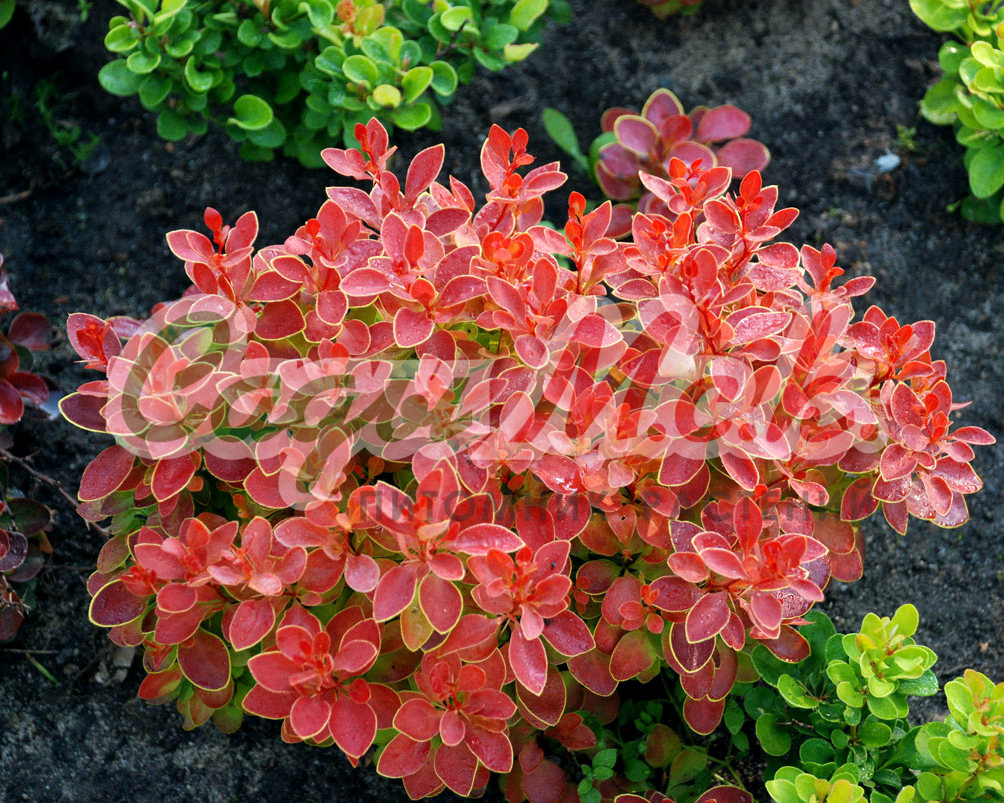 Саженцы барбариса Тунберга Dаrt's Rеd Lаdу – представители одного из самых красивых сортов этого растения. Листья у этого кустарника мелкие, нежного малиново-красного цвета. К осени листва опадает. Сам куст барбариса достигает метр в высоту и в ширину. Плоды у крупномера Dаrt's Rеd Lаdу продолговатые, кораллового цвета, блестящие. Созревают они в первый месяц осени и держаться на кусте всю зиму. Саженец барбариса устойчив к жизни в городских условиях, однако не переносит слишком много влаги. Этот кустарник лучше всего раскрывается при большом количестве солнечного света.