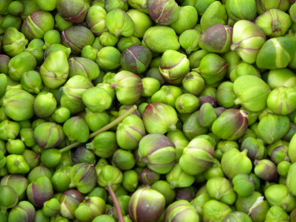 Каперсы Cаpparis - многолетнее растение. Стебли стелющиеся, длиной до 150 см. Листва округлая, обратно яйцевидная или эллиптическая с колючими прилистниками. Цветки 5-8 см в диаметре, лепестки белые, бледно-розовые или желтые. Период цветения - май-октябрь. Плод – мясистая или ягодообразная коробочка.