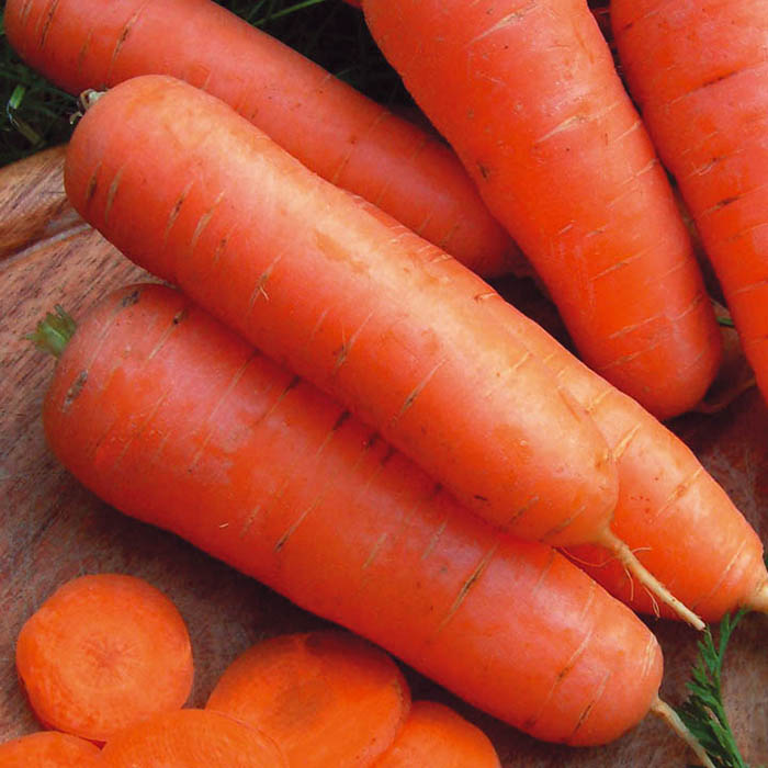 Морковь Kanterbyuri - поздний высокопродуктивный сорт. Период от всходов до технической спелости - 137 дней. Листья мощные, зеленые, устойчивые к альтернариозу и церкоспорозу. Корнеплоды толстые, конические, интенсивно-оранжевые.