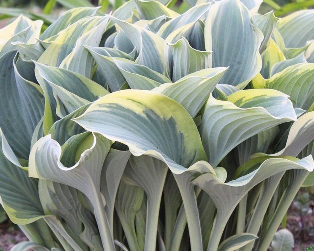 Хоста Krossa Regal - аккуратный куст, стабильный декоративный эффект, минимальный уход. Цветение июль-август. Великолепная вазообразная форма куста, "королевскими" достоинствами обладают и большие сизые листья, плотной фактуры. Хоста популярная. Нарастает хорошо, предпочитает тень, полутень.