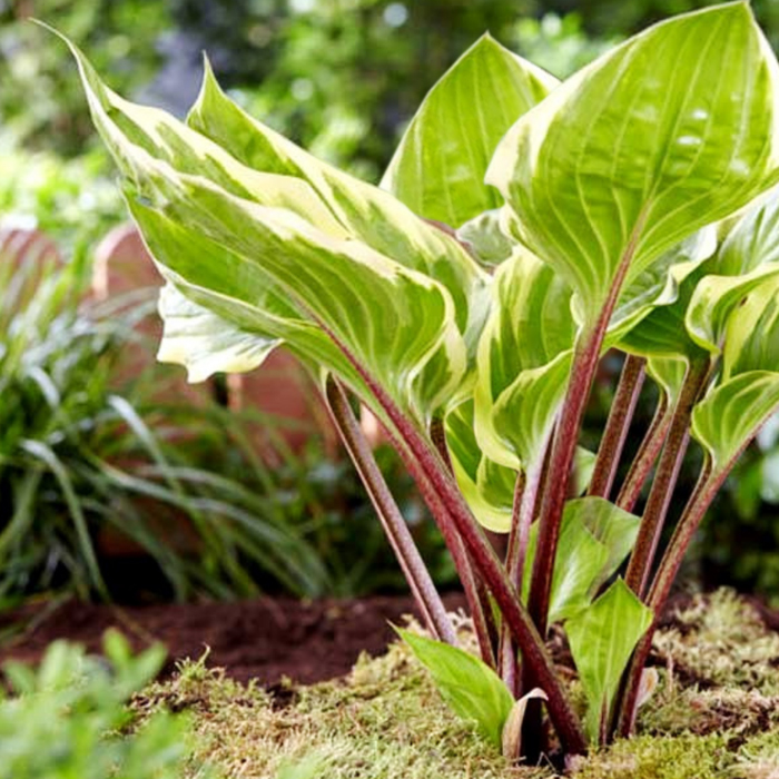 Хоста гибридная Сорбет - многолетнее, декоративно-лиственное растение. Размер куста 50х70 см. Быстрорастущий сорт, листья зеленые с неравномерным белым краем, стебли красные, цветы фиолетовые. Для посадки выбирают полутенистые или тенистые места, предпочитает влажные почвы. Полив тщательный и регулярный, при хорошем поливе у хосты будут крупные, здоровые листья и пышное цветение. Хоста гибридная Сорбет прекрасно зимует. На одном месте может расти более 20 лет. Эффектно смотрятся у водоёмов.
