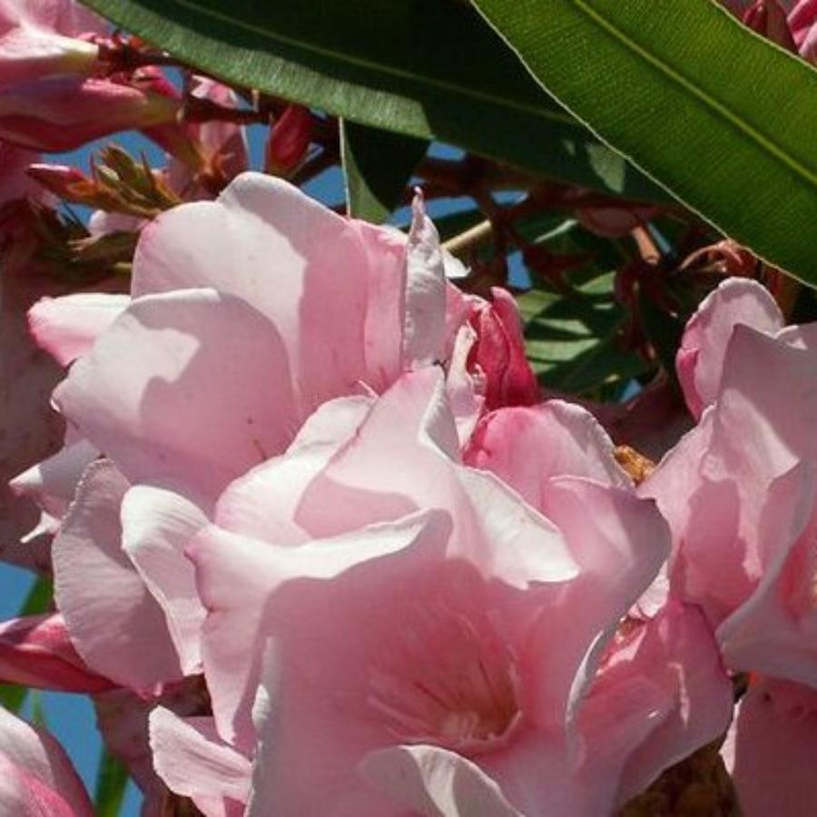 Олеандр обыкновенный Луи Пуже Виен (лат. Nerium oleander Louis Pouget - Wien - красивоцветущее быстрорастущее растение. Стебли коричневатые. Листья зеленые, их кайма и средняя полоса светло-зеленая. В начале лета кустарник зацветает светло-розовыми пышными цветками с волнистыми лепестками, которые отличаются приятным ароматом. Внимание! Олеандр - ядовитое растение, поэтому при его культивировании требуется осторожность.