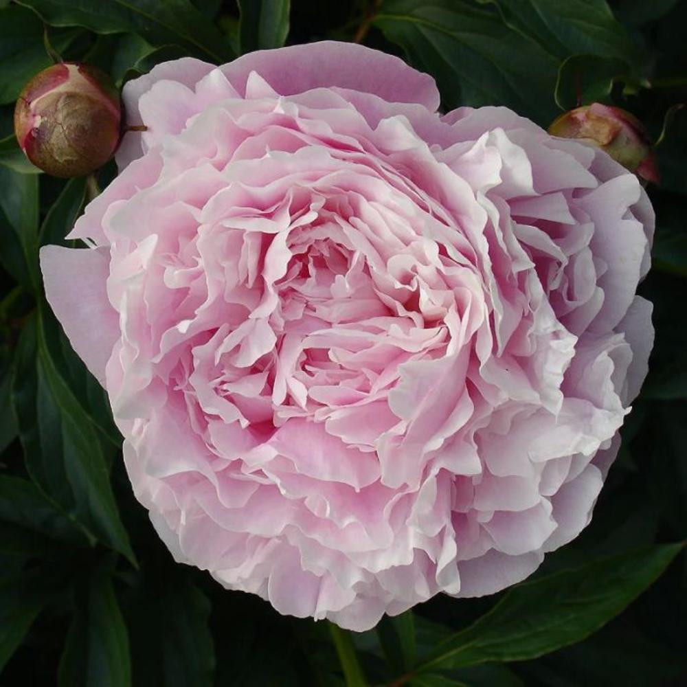 Травянистый пион Myrtle Gentry иахровый, розовидный. Розовое очарование с удивительно приятным ароматом, напоминающий розу. Крупные соцветия имеют розовую окраску с более темным оттенком у основания лепестков. Благодаря желтому оттенку в центре бутона, кажется будто они светятся изнутри. Куст высокий 90см. Размер цветка 18 см. Этот пион относится к поздноцветущим сортам.